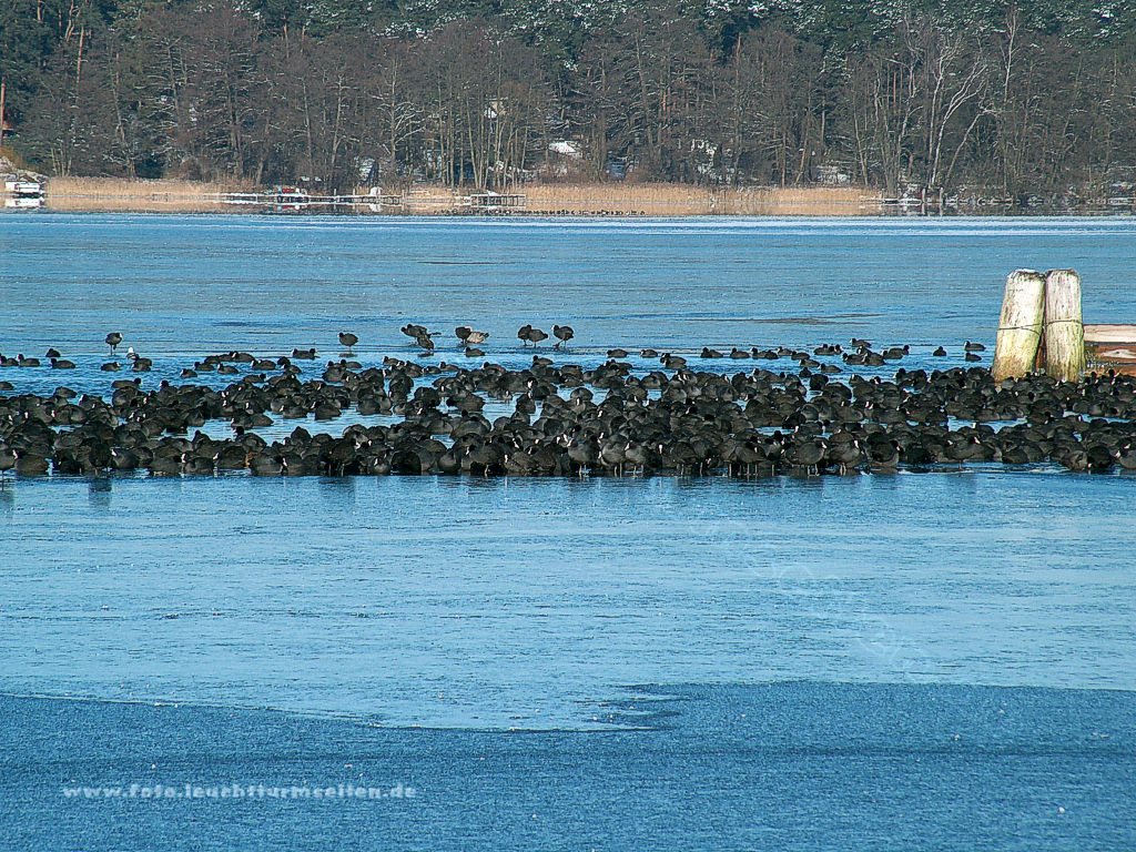Blesshühner auf dem zugefrorenen Scharmützelsee |