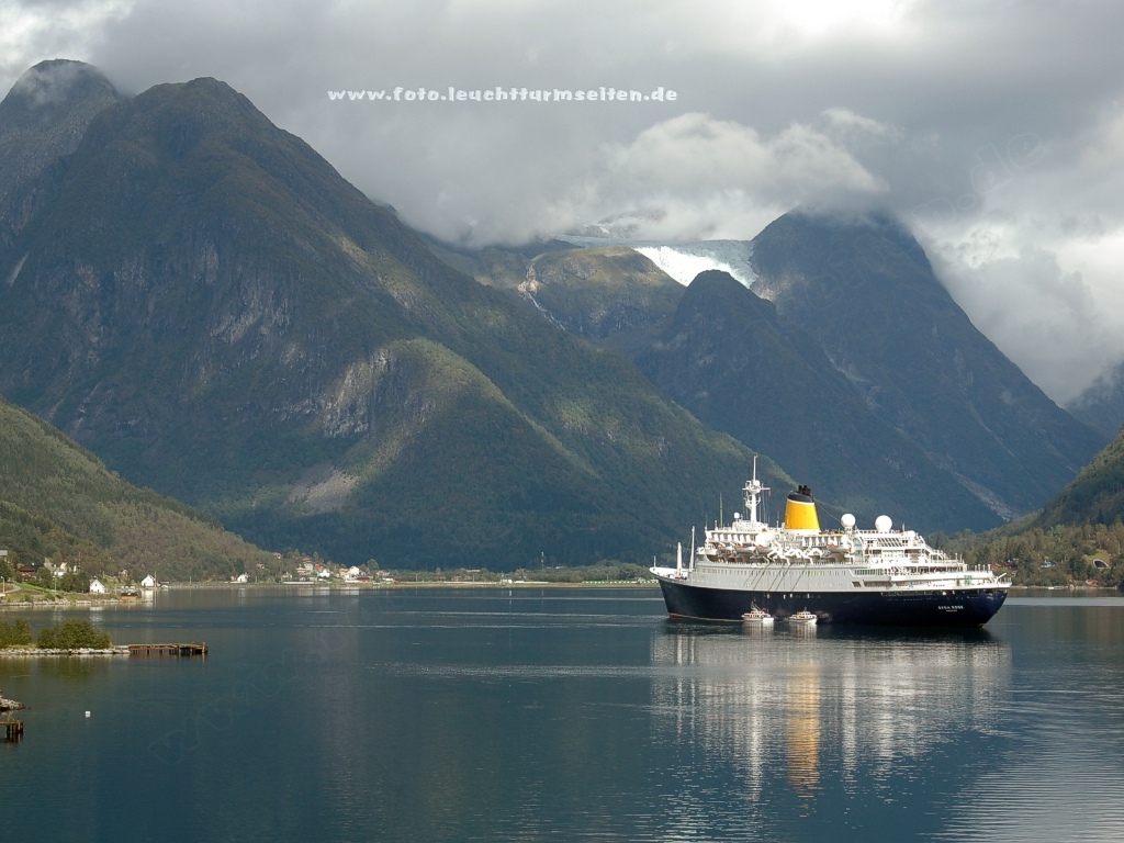 Kreuzfahrtschiff am Ende des Fjaerlandsfjordes |