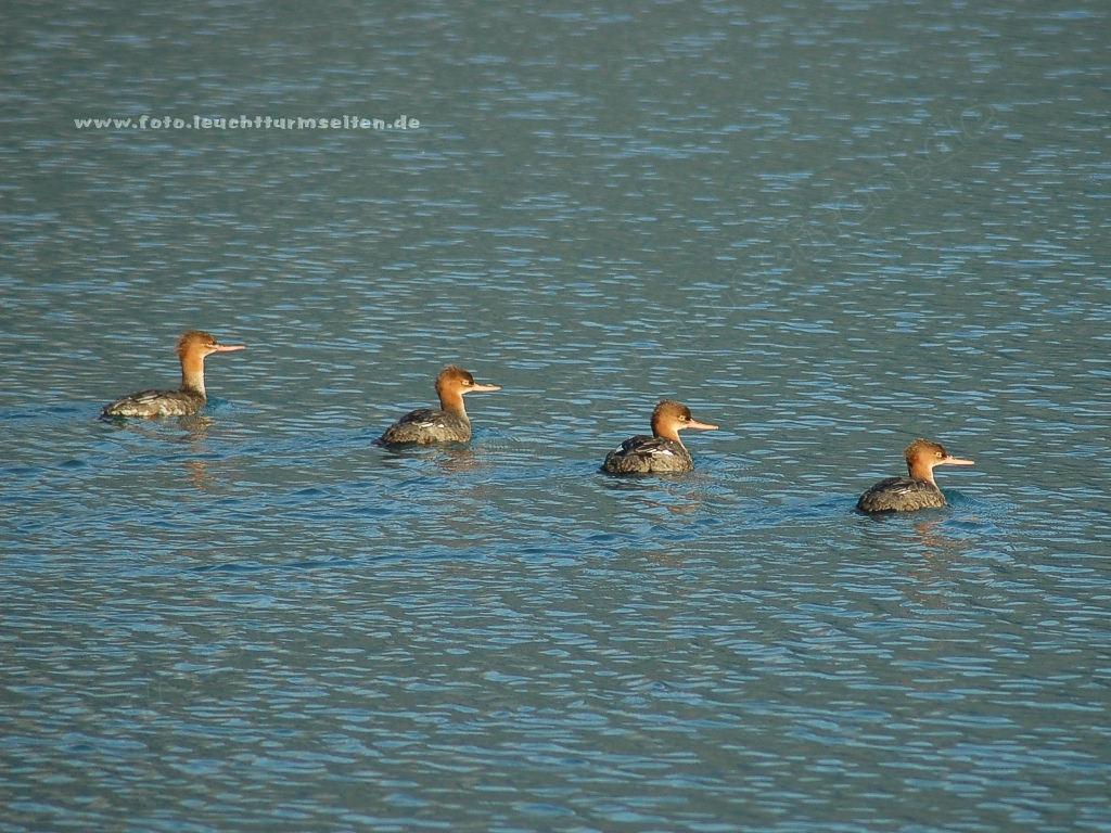 "Die Augen rechts!" Vier Mittelsäger im Lustrafjord |