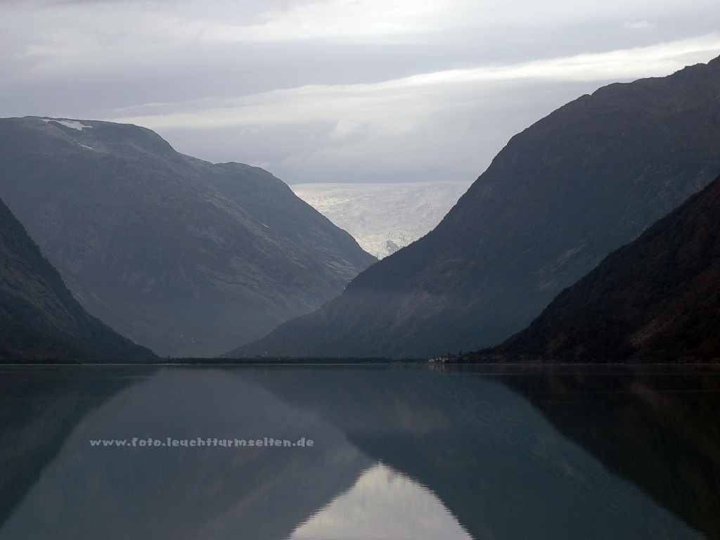 Veitastrondsvatnet mit Ausläufern des Jostedalsbreen |